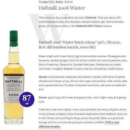 Daftmill - 12년 숙성, 2008/2020, 46%