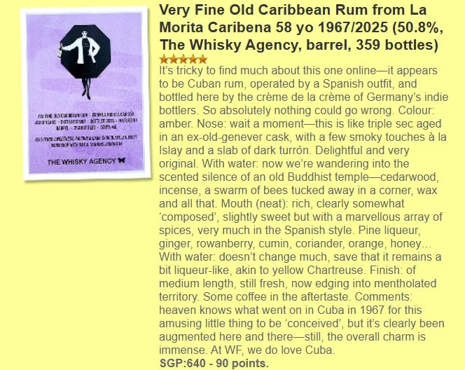 The Whisky Agency Caribbean Rum - 58YO, 1967/2025, 50.8% (WF90) (分現金/信用卡價)